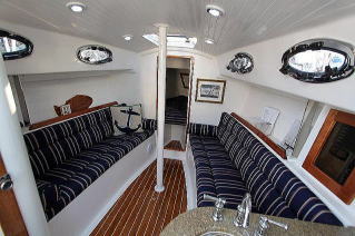 | オーナー層にも幅があります。セーリング一辺倒で良いという方もおられるし、たまにはクルージングもと言われる方もおられます。セーリング主体でシングルなら、是非、デイセーラー、もし、クルージングもと考えるのなら、パフォーマンスクルーザーをと御勧めしてきました。しかし、これにはクルーがやっぱり必要になる。クルーはゲストとは違います。セーリングができる相棒です。 ところが、もうひとつのアプローチとして、デイセーラー側からクルージング要素を取り入れてきた。 シングルハンドであり、スリムな幅、フリーボードも相変わらず低い。でも、全長を長くして、その分キャビンが確保できる。全長が長くなれば、天井も上がる。何で、それがデイセーラーなんだ? と、当初は疑問に思わないでも無かったわけですが、今から考えると、それはデイセーラーからのクルージングへのアプローチであったわけです。 アレリオンヨットだって41フィート迄あります。デイセーリング主体なら、30フィード前後で十分面白い。それ以上長いデイセーラーは、やっぱりデイセーリング+クルージングです。 さらに、ハーバー30プラスというヨットがアメリカで、昨年誕生し、今年から本格的に建造し始めました。このハーバーヨットはデイセーラーなんです。ところが、そこにプラスという名前をつけ、その意味はクルージング的要素を加えたわけです。 セルフタッキングジブ+ジブブーム、排水 量は3、380KG、バラスト1、490KG バラスト比は44%です。 そして、セール面積/排水量比は21.9 ありますから、結構スイスイ走るでしょう。 セーリングを遊ぶには十分ではないかと 思います。もちろん、シングル仕様です。 キャビンはご覧の通り、真っ直ぐ立てる 天井の高さがあります。ただ、幅は3.0 2mですから、一般クルージング艇から 比べれば、細身かと思います。 考えてみたら、昔のヨットはそんなにでかくなかった。フリーボードも低かった。でも、天井は真っ直ぐ立って歩ける高さを確保していました。そんな30フィートをシングルハンド仕様にして、帆走性能を高めたと考えて良いかと思います。 これまでのクルージングはキャビンが主で、セーリングは従だったと思います。だからあんなにでかくなってしまった。これに対し、デイセーラーのアプローチは、それを逆転させました。 セーリングを基本にして、どれだけのキャビンを確保するかは、どれだけのクルージングをするかになると思います。デイセーラーからのアプローチは、シングルと帆走性能を確保して、プラスどれだけのキャビンをプラスしていくかになってきました。 |
