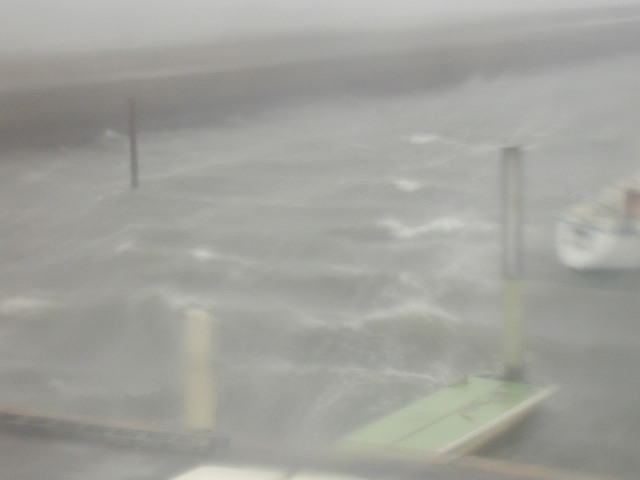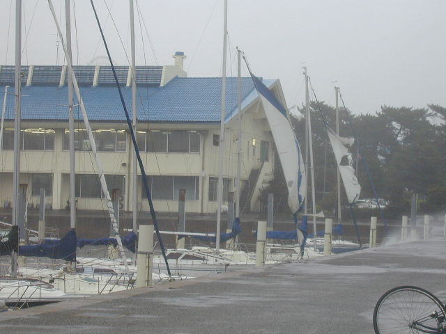 | 台風16号が九州を直撃、福岡は幸いにも、台風が東側を通過しましたので、影響は 少しは軽減されました。それでも、風速は30mを超え、瞬間では40mオーバーでし た。これがどんなにすごいのか、聞いているだけでは解りません。一度、真っ最中に マリーナに来て、体感される事をお奨めします。そうしたら、ヨットをほったらかしには できません。 台風で必ず出る被害はファーリングジェノアです。写真のように、巻いたセール の隙間に風が入りこんで、一瞬のうちにセールが開く。後は、バタバタはためき ながら破れてしまう。ついでに、ファーラーのアルミホィールも曲がってしまう。 セールがバタバタしながら何時間も経つ。マストががたがた揺れていました。 今回も4艇の被害が出ました。幸いにも波がなかったので、ヒールはあまり しなかったのですが、波が入りこんで来ると、係船ロープが切れる事もあり、 そうなる被害は大きくなります。 セールは降ろすのが一番良い方法ですが、或いは、メインセールをロープで ぐるぐる巻きに縛り、ファーリングジェノアはしっかりきつく巻いて、ジブシートと ドラムのラインをしっかりテンションをかけて動かないようにしておきます。さら に、スピンハリヤードでジェノアの巻きとは反対方向にジェノアを縛るようにスピ ンハリを巻きつけておきます。これで、相当被害は軽減するでしょう。上記の 写真はスピンハリヤードが巻いてありました。でも緩かったんでしょうね。とうとう 開いて、セールはパーです。 台風は福岡の東を通りました。台風の風は反時計回りですから、台風の東側は 台風の移動スピードも加わり、風速が増す。西側は逆に軽減されます。台風が 接近するにつれ、東の風が吹き、台風が横を過ぎる時に北風となり、過ぎ去るに つれて西側に移動してきます。このヨットハーバーの東側は陸地ですから、陸地 の建物が障害となって、風速を弱めます。北になると、ヨットが南北に係船してあり ますのでヨットが傾かない。西側に移ると、西側が海で、横からの風ですので、最も 荒れる。ご自分の係船場所でも、台風が接近したら、こういう事も考慮した方が良い でしょう。とにかく、台風の真っ只中に係船している場所に行って見る事お奨め致し ます。そうしたら、マリーナに預けてあると言っても安心してはいられません。 本日は”パーフェクトストーム”の一日でした。 |