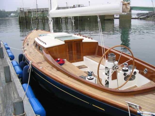 | 第68話で紹介致しましたM36の写真が来ましたので、紹介しましょう。 ステアリングポジションから全て手が届くように配置されています。小さなジブに大きな メイン、この写真では電動ウィンチが設置されています。実に美しい艇です。一見、ロング キールを想像しますが、キールはフィンキール。いわゆる、水線から上はクラシック、下は モダン。こういうヨットは帆走性能も無視できません。こんな美しいヨットをシングルハンドで 気軽にセーリングする。想像しただけでも、わくわくしてきます。さらに詳しくはシングルハンド デイセーラーのページに掲載致します。 |