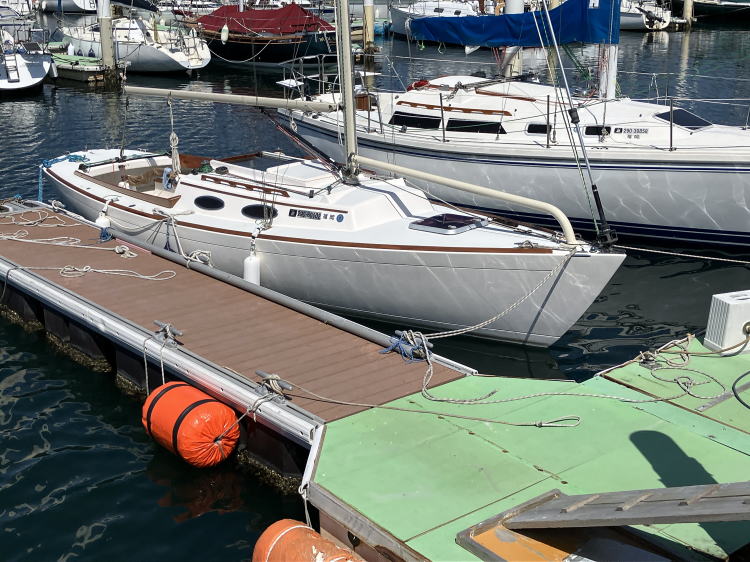 さて、復帰後、写真の2艇を売りに出します。どちらも整備会社に整備をお願いしておりましたヨットで、写真の向こう側がカタリナ30、そして手前がアレリオン28です。カタリナ30は中古ページに掲載していますが、アレリオン28についてはもう少し残った整備を済ませて掲載しようと思います。