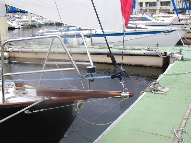 | 数年前にレストアしたSK25が帰ってきました。今度はこれにバウスプリットを設置して ファーリングジェネカーで遊ぼうという計画です。クラシックなデザインだけに、チークで バウスプリットを製作、トウレールがチークですので、そのラインにフィットして、良い雰 囲気になりました。フォアステーのチェーンプレートを一旦撤去して、バウスプリット設置 後、これを貫通させてチェーンプレートを設置しています。 ここに写真のようにファーリングジェネカーを設置しました。 バウスプリットも最初からあったかのように、似合っています。ジブハンクスで降ろしたら はずさずに、そのままカバーをかけて、ライフラインにひっかけておく。まるでメインセール のブームのようにです。ジブはレギュラーサイズで、このジェネカーをおおいに使おうと いう計画です。 これからいろんな計画をもっておられる方も多いでしょう。それにどのようにしたら、最も 良いか、そんなアドバイスができれば幸いです。 |