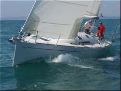 | スポーツヨットとクルージングヨット、何が違うのか?決まった形があるわけでは ありませんが、実際の運用面を考えて、シングルかダブルで充分動かせる必要 はあると思います。それ以上の人数が必要となると、ちょっと稼働率が悪くなる かもしれません。 まずは、セーリングを楽しもう、セーリングしにいこう、ドライブ感を味わおうという オーナーの意識が必要です。それがあれば、何も食料を大量に買い込む事も 無く、コンビ二の弁当とお茶で充分、或いは、短時間ならペットボトル1本の飲み物 があれば充分。まずは、オーナーの気持ちが軽い事が必要です。 行き先は特には決めていない。或いは、近くに島でもあればそれを1周してくる。 風向風速計とスピード計はあった方が良い。いつもそれを見て、風向と風速、それ に対する艇のスピードを見る。クローズぎりぎりで走る。これ以上上ると裏風が入る それのぎりぎりで走る。その時のセールのトリミングをどうするか。 ジェノアカーの位置はとりあえず、フットとリーチの両方に均等にテンションがかかる 位置、それで目一杯引き込む。リーチ部がスプレッダーに接触する。メインシートも トラベラーのカーは中央で、目一杯シートを引きこむ。これでヨットはどんな風に走 るだろうか。その時の風速は何ノット?艇速は何ノット?ヒールは何度ぐらいヒール しているだろうか?これが基準となる。 もし、ヒールが大きく、サイドデッキが海水で洗われるようなら、ヒールしすぎ。ヒール しすぎると、ヨットは風上に上ろうとするから、真っ直ぐ走るには舵で風下の方にきら ないと真っ直ぐ走らない。それで舵は抵抗になっているので宜しくない事になる。 まあ、20度ぐらいのヒール角度なら良いんじゃないでしょうか。そこでちょっと風を抜く でも上り角度はキープしたいなら、反対舷のジブカーを少し後ろにずらしてやる。 それでタックすると、新しいタックではジブカーが後部にずれている為、セールのクリュ ーに対するシートの引き込み角度が変わっている。よろ後ろから引くという事はセール のフット側によりテンションが大きくかかり、リーチ側は少し緩む事になる。するとリーチ は少し開く、開いた所から風が抜ける。でも、セールの下部はタイトサイドステーにぴっ たりくっつく。上部で風を抜き、下部で角度を稼いでいる。 メインセールも同じ事。シートを緩めれば、角度が開く、それで、トラベラーのカーを風上 側に引き上げる。シートが緩むという事はリーチのテンションが緩む、でも、トラベラー カーを引き上げる事によって、セールは再び内側に入ってくる。 加速をするなら、少し進行方向を落として、セールを少し緩めて加速、そして再び上る。 とにかく、スポーツセーリングはセーリングに意識を置いて、より良い走りを目指す。 しかしながら、レーサーではありませんので、キャビンも充実して、ちょっとロングに出る 場合でもヨットにゆったり寝泊りできる装備を備えている。 コマー社ではクルージング艇もセーリング性能を考慮してスポーツとしての考え方を持っ ています。そして、さらにオープントランサムはさらに、そのスポーツカー的デザイン。 これを家族で乗るんです。従来ならレーサーかと思わせるような外観デザインも、少し その様相を呈したスポーツヨット。さすがはイタリアです。 ![]() これファミリースポーツヨットなんです。そして内装はこれ COMET41S |