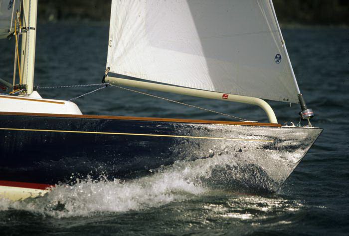| シングルハンド/デイセーリングヨットのベストセラーと言えば、アレリオン28です。クラシックな美しいルックスでありながら、水線以下はモダンな船型、自由自在に操り、そのセーリングを楽しめる 昨今のデイセーリングヨットのきっかけを作ったヨットとも言えます。 全長は28フィート3インチ(8.61m)、水線長:22フィート10インチ(6.96m)、バウとスターンにオーバーハングを持ち、クラシックヨットの特徴です。これは低いフリーボードながら、波がデッキにあがりにくくするデザインだし、スターンは追い波の影響を軽減してくれます。これによって少し水線長は短くなりますが、ここはクラシックな美しさをキープしながら、クルージング艇としての乗りやすさを保っています。幅は8フィート2インチ(2.49m)と細身、これもクラシック艇の特徴です。初期ヒールはしますが、ハルデザインの低い重心と排水量2.56tに対してバラスト990kgはバラスト比38.7%はそれからぐっと持ちこたえるスタビリティーがあります。 セールはフルバテンのメインセールに100%のファーリングのセルフタッキングジブ、ブームの長さ(E)が3,81mに対して、フォアステーのチェーンプレートからマストまで(J)が2.97mですから マストの位置がぐっと前に位置し、メインのラフ長(P)が10.06m、ジブのIが9.14mですから、大きなメインセールのフラクショナルリグです。ジブをセルフタッキングにする事によってシングルでの取り扱いが容易になるかわり、セルフタッキングによりセールエリアの減少に代わり、大きなメインセールで補う。これで、シングルで、取り扱いがし易いうえに、帆走性能も良いという事になります。実際、セールエリアはメインが19.16u、ジブが13.57u、合計で32.73uです。実際、排水量に対するセール面積比は17.6です。これは結構良い数値で、ハイパフォーマンスに入る数値です。 一方、水線長の排水量に対する比は、排水量は214で、中排水量の軽い側に入ります。前後にオーバーハングがあり、それでもこの数値ですから、実際セーリングしますと、実効水線長はもう少し長くなり、充分なスタビリティー(低い船体重心とバラスト比)を考えますと、かなりクルージングとしてハイパフォーマンスのセーリングができます。そのハイパフォーマンスをシングルで、操作がしやすくデザインされているのが特徴、まさしくデイセーリングを堪能できるデザインです。これらを可能にしているのが、船体をサンドイッチ構造にするのとSCRIMPシステム工法によるグラスに対する最適樹脂量を可能にした工法です。前後のオーバーハングで水線長は短くなりますが、それに対してのこの工法によって軽く強く建造できる。実に、全体を入念に計算し、デザインされたヨットである事がわかります。 セルフタッキングジブの効用はメインセールと同じようにタックジャイブが簡単にできる。それにジブブームを設置する事によって(特許)、あらゆる方角からの風に対しても効率良くジブを展開できる。大きなジェノアはダウンウィンドでは非常に効率が悪いので、それに比べたら、スピンを張らない限りこちらの方が遥かに効率は良い。シングルを前提に考えると、退屈なダウンウィンドでも、このジブブームによってエキサイティングなダウンウィンドセーリングが可能になります。これはオートマチックなウィスカーポールを設置しているようなものです。 デイセーリングの面白さを演出するには、セーリングをエキサイティングに、自由自在にするのが一番です。それには、このアレリオン28は最適なパフォーマンスを備え、尚且つ、シングルセーリングを容易にしています。これ以上の面白さは無いでしょう。それに気がついた市場は、どんどん増えています。このアレリオン28のビデオを是非ご覧下さい。アレリオンのエッセンスが良く解ります。アレリオンビデオ 加えて、ビデオにもありますが、シングルラインリーフィングシステムもこの特許、容易にしかもスムースに可能、メインセールにはスライダーにベアリング付きですからスムースなアップダウン、メインシートトラベラーは邪魔にならない後部設置ですが、シートはそこからリードされてコクピットにリードされていますので舵を持って容易に手が届く。直進性の良さは舵から手を離しても真っ直ぐ走り、普通こんな事はしませんが、セーリング中にその場で360度回転するのも容易。こんなヨットは他にはありません。2006年モデルからヤンマーセールドライブエンジンが標準になりました |