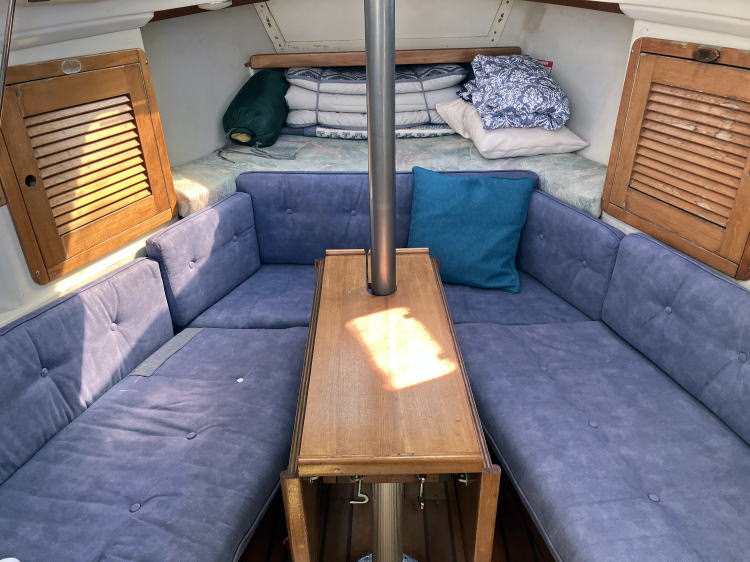 | エレクトリック | 12Vバッテリー X 2(2025年4月交換済)、ソーラーバッテリーチャージャー、 陸電(マリーナに陸電装置が無いので使っていない,一般100Vコンセントへの変換コネクターあり、 但しその先の長いケーブルはありません。) シガーライターソケット(2連) |