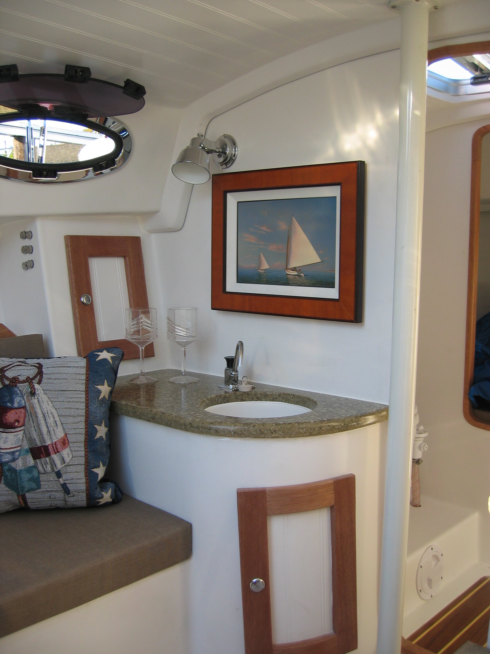 ショーに出品したばかりで、写真は造船所の人 が撮って送ってくれたんですが、これからプロの カメラマンに撮ってもらうそうなので、後でもっと 良いのが来ますが、とりあえずのご紹介です。 全長は25’9”、26フィートのヨットと言っても良 いかもしれません。バラストが何と言っても、約 49%あります。それにこのバルブですから、腰 は相当強いと思います。シングルには良いです ね。さらに、このセルフタッキングジブにジブブ ームです。これは今まで退屈だったダウンウィ ンドの帆走がこれで面白くなります。シングル ハンダーには良い装備です。 このヨットのもうひとつの特徴はエンジンです。 ホンダの船外機を応用して、それにセールドラ イブをつけたものです。ですから、燃料はガソリ ンです。ですから、空気の取り入れと排気には きちんと装備がなされています。 コンパクトなサイズはシングルのデイセーラー には程よいサイズ、気楽な帆走が容易に想像 できますね。詳細はもう少しお待ち下さい。 アメリカではこんなのが大流行!!!!! |
