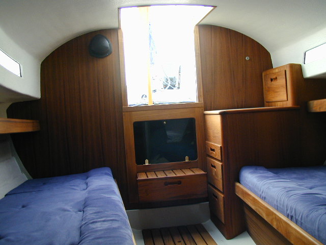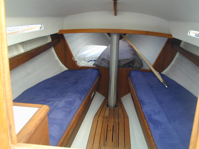 | 最近のヨットは何から何までついてます。それが当たり前のように感じますが、一方、ノルディックフォークは標準ではシンプルそのものです。でもこれがまた気軽で良いという考え方にもなります。 上の写真はノルディックフォーク25のキャビンです。実にさっぱりしたもので、両サイドにクッションがあって、左舷手前に引き出しのある棚がある。それだけです。照明、ありません。航海灯は夜間航行無しでしたら不要、そうしたらバッテリーも不要。エンジンは船外機ですので、スタンチューブ無し、マストはスルーデッキですが、マストの中に入るであろう雨水はデッキから上で外部に出るようになっていますので、ビルジが全く溜まらない。キャビンは完全ドライです。 考えようによっては、この方が気楽で心配が無い。バッテリーのスイッチを切ったかどうかなんて心配無用、照明はキャンプ用なんかを持ち込む事もできる。夜間航行はしないのであれば不要だし、万一の時は電池で点灯する航海灯もある。実際、何人も見に来られて、実際にキャビンに座ってみると、これでも充分だなという感想をもたれます。左右のクッションに二人寝れるし、バウにクッションを入れれば、大人一人か子供二人ぐらい寝れます。まさしく、キャンプ気分。ただ、トイレだけはポータブルトイレを入れてください。入り口を閉めて、個室とする。まあ、何も無いが、何故か寛げる。落ち着ける空間です。 小さなソフトタイプのアイスボックスに、飲み物と弁当入れてコクピットに置く。それでセーリングに出ます。デイセーリングを楽しんで、海上でランチを楽しむ。帰ってきたら、コーヒーでもと思うなら カセットコンロを入れておけば、コーヒーを入れて楽しめる。ドアの鍵をかけたら、それだけ。何も心配要りません。夜間は、キャビンにキャンプ用の照明などを使えば、寝泊りもできます。考えてみたら、シンプルで何も無いようで、ちょっと工夫すれば、一通りの事は難なくできます。こういうヨットも良いんじゃないでしょうか。そして、姿は美しいヨットです。シンプルですから、自分でいろんな手入れをするにも簡単。 船外機より線内機と言われますが、マリーナを出たらセールを上げる。船外機ですから、ペラにロープ巻いても、潜って取る必要が無い。スタンチューブも無い。無い無いづくしでも、これがかえって気楽という考え方もある。 シンプル、それでいて充分楽しいセーリングができて、余計な心配もしなくて良い。そして、何と言っても美しいクラシックタイプヨット。存在感あります。但し、念の為に言っておきますが、オプションで 照明も航海灯も、ジブファーラーもファーリングジェネカーも、メインセールのブームファーラーもあります。でも、標準に近い仕様がお奨めです。 |